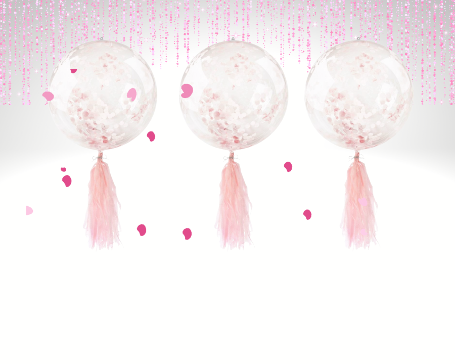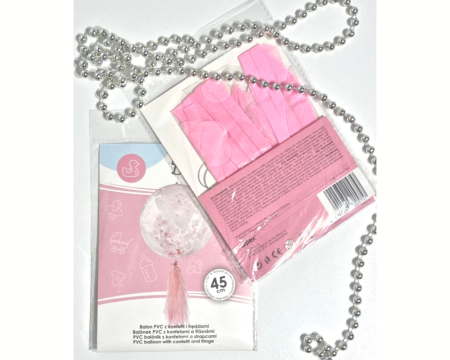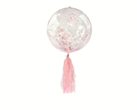 Balon 45cm PVC z konfetti i frędzlami - różowy