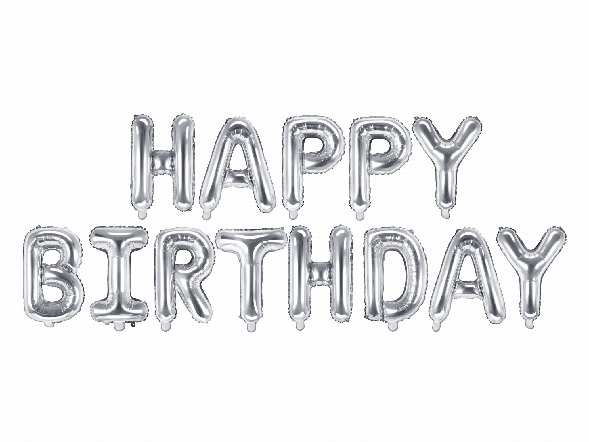 BestselleryNowościPromocjeO nasBalon foliowy metalizowany Happy Birthday w kolorze srebrnym, wymiary ok. 340 x 35 cm (134 x 14'').