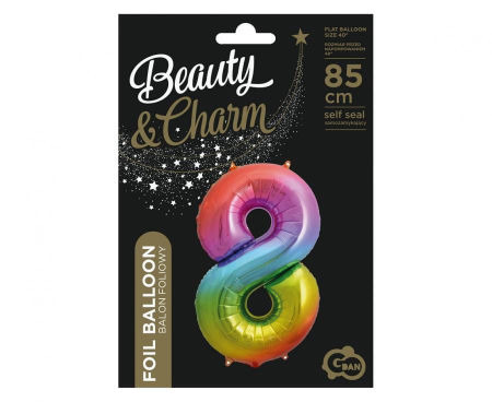 BALON FOLIOWY CYFRA 8, TĘCZOWY, B&C