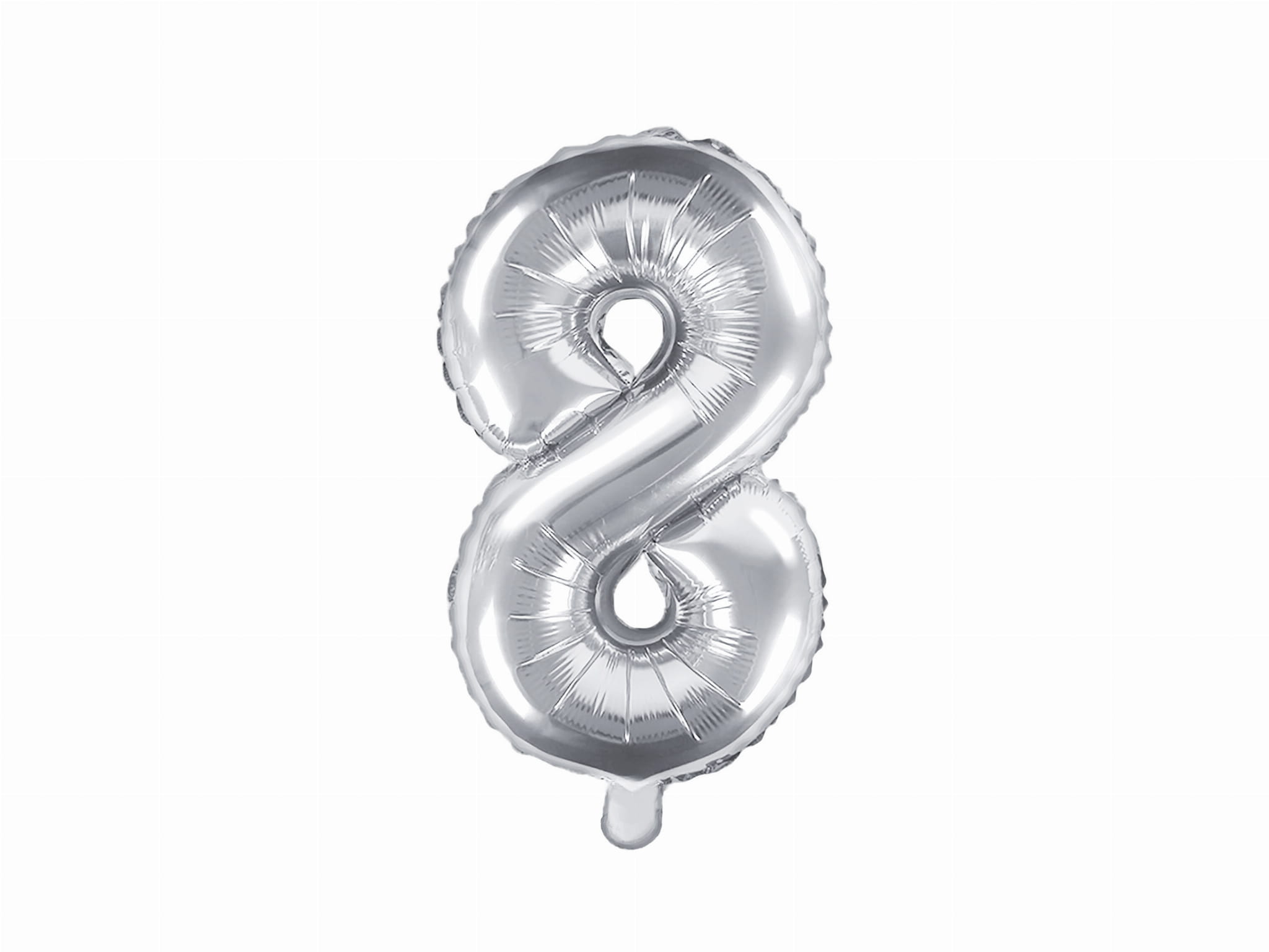 BestselleryNowościPromocjeO nasBalon foliowy metalizowany Cyfra ''8'' w kolorze srebrnym, rozmiar przed napompowaniem ok. 40 cm (16''), rozmiar po napompowaniu ok. 35 cm (14''). Do napompowania powietrzem.