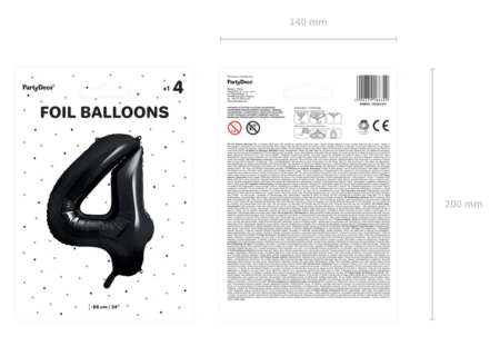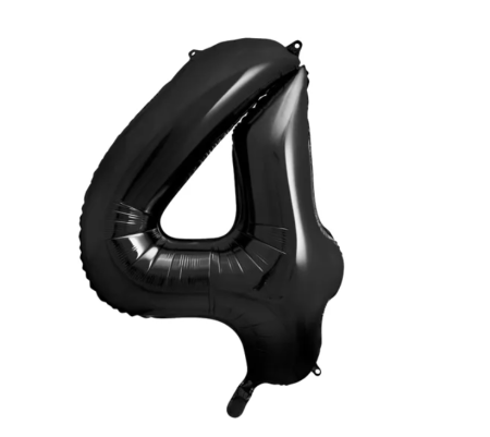 Przepiękny, duży czarny balon foliowy na hel/powietrze w kształcie cyfry 4. Idealny Sylwestra czy też jako dodatek do innych balonów i kompozycji z okazji urodzin lub rocznic. Większe liczby można tworzyć dodając inne balony dostępne w naszej ofercie.