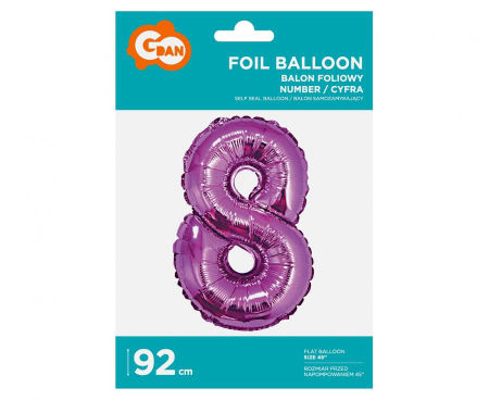 Przepiękny, duży różowy balon foliowy na hel w kształcie cyfry 8 (osiem). Idealny na imprezę z okazji 8 urodzin, rocznicy, Sylwestra oraz jako dodatek do innych balonów i kompozycji z okazji urodzin lub rocznic. Większe liczby można tworzyć dodając inne balony dostępne w naszej ofercie.