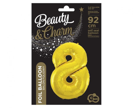 Przepiękny, duży złoty balon foliowy na hel w kształcie cyfry 8 (osiem). Idealny na imprezę z okazji urodzin, nowej pracy, awansu, rocznicy, Sylwestra oraz jako dodatek do innych balonów i kompozycji z okazji urodzin lub rocznic. Większe liczby można tworzyć dodając inne balony dostępne w naszej ofercie.