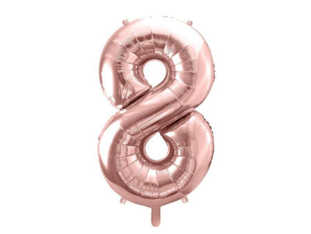 BestselleryNowościPromocjeO nasBalon foliowy metalizowany Cyfra 8 w kolorze różowego złota, rozmiar po nadmuchaniu ok. 86 cm (34 cale).