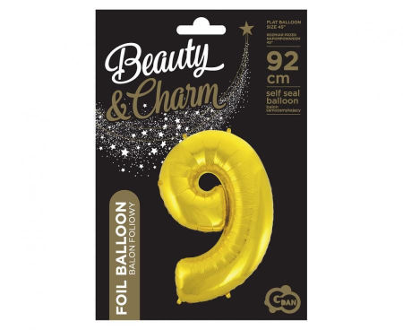 Przepiękny, duży złoty balon foliowy na hel w kształcie cyfry 9 (dziewięć). Idealny na imprezę z okazji urodzin, nowej pracy, awansu, rocznicy, Sylwestra oraz jako dodatek do innych balonów i kompozycji z okazji urodzin lub rocznic. Większe liczby można tworzyć dodając inne balony dostępne w naszej ofercie.