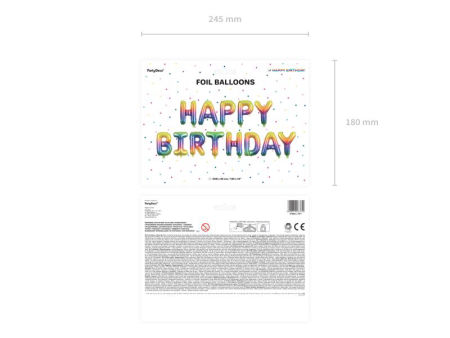 Balon foliowy metalizowany Happy Birthday w kolorze tęczowym (żółty, czerwony, fioletowy, niebieski i zielony), wymiary ok. 340 x 35 cm (134 x 14'')