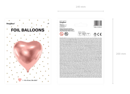 Balon foliowy metalizowany w kształcie serca w kolorze różowego złota, wymiary ok. 72 x 73 cm (28 x 28.5 '').