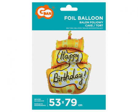 Balon foliowy Tort Happy Birthday, 53x79 cm