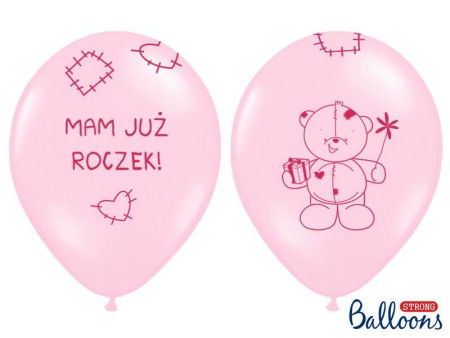 BestselleryNowościPromocjeO nasBalony Strong Miś (6 szt.) - mam już roczek w kolorze Pastel Pink, z czerwonym, trzystronnym nadrukiem: z obu stron oraz z góry.