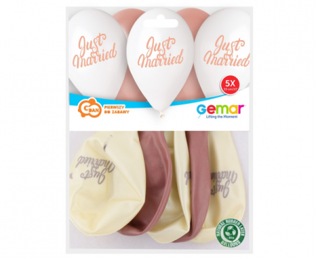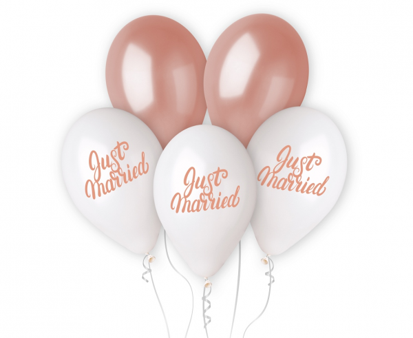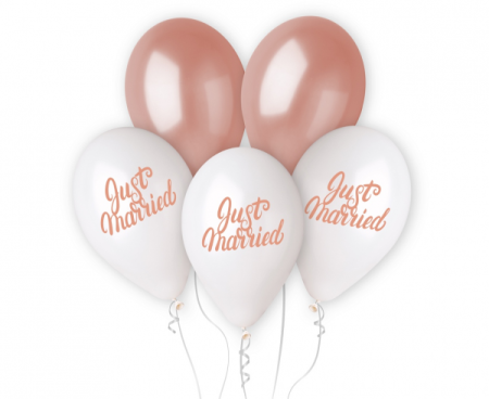 Balony Premium Hel Just Married, 13 cali/ 5 szt., zestaw, ślub, wesele