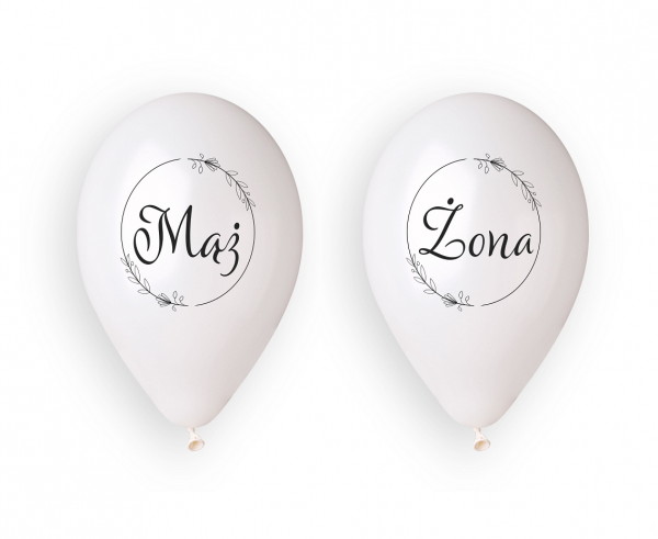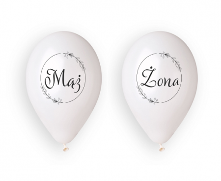 Gustowne balony z nadrukiem "Mąż" i "Żona" to doskonała dekoracja na ślub i rocznicę.