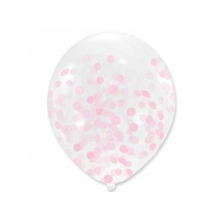 Balony transparentne z jasnoróżowym konfetti, 12cali, 30cm - zestaw, 5 szt.
