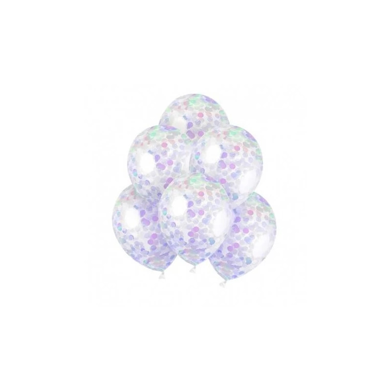 Balony transparentne z opalizującym konfetti, 12cali, 30cm - zestaw 5 szt.