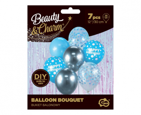 Balonowy bukiet w kolorze srebrno-niebieskim z kolekcji Beauty&Charm. Stwórz zjawiskowy bukiet z balonów i przygotuj szampańską dekorację na urodziny, wesele, wieczór panieński, sylwestra i wiele innych okazji!
