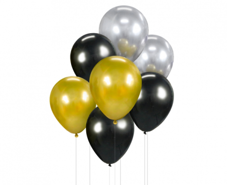 Na bukiet balonowy składa się 7 balonów w rozmiarze 30 cm (12”). Po napełnieniu helem balony długo unoszą się w powietrzu. Platynowy odcień balonów sprawia, że fantazyjnie mienią się w świetle, dzięki czemu przyciągną wzrok Twoich gości.