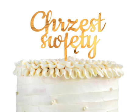 Dekoracja akrylowa na tort Chrzest Święty, złota, 11x13 cm