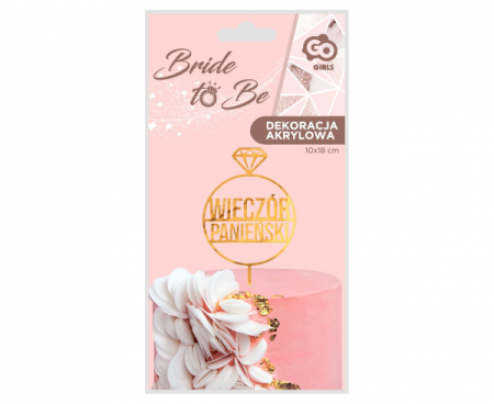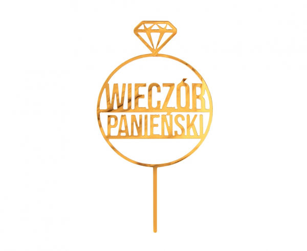 Dekoracja akrylowa na tort Wieczór Panieński, złota, 10x18 cm