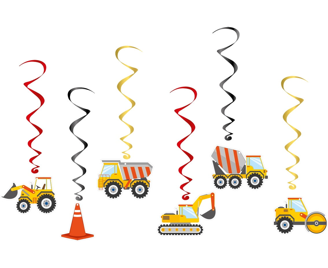 Dekoracja wisząca Plac Budowy, 6 elementów, girlanda - Z MOTYWEM POJAZDÓW BUDOWLANYCH