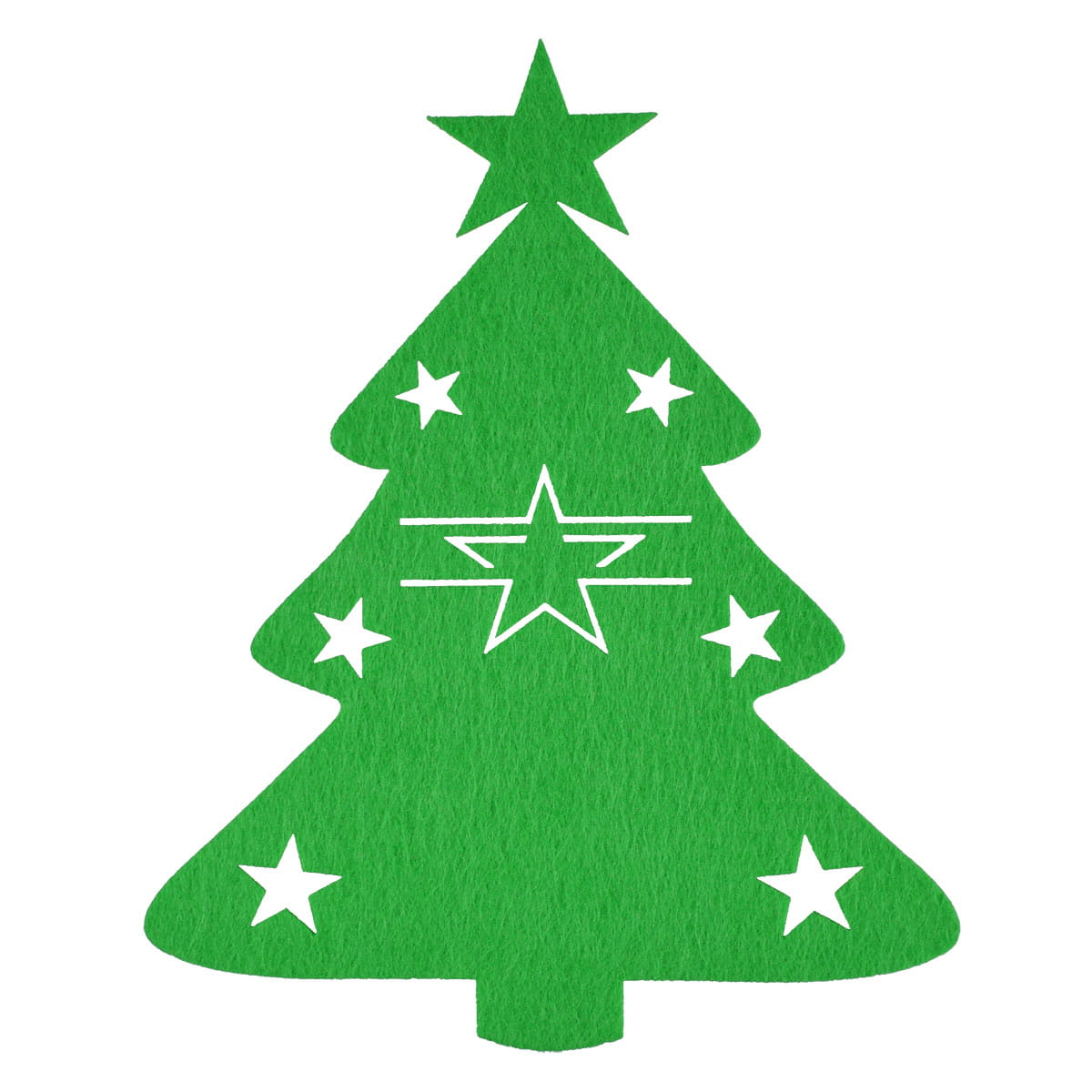 • Zielone etui na sztućce w kształcie choinki z gwiazdkami.