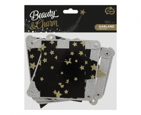 Girlanda papierowa B&C Happy New Year - Złote gwiazdki, 180 cm