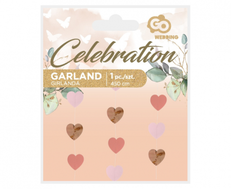 GIRLANDA NA ŚLUB RÓŻOWE SERDUSZKA - 450 cm