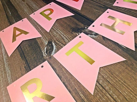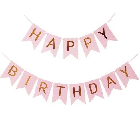 BestselleryNowościPromocjeO nasJasnoróżowa Girlanda na urodziny, z pięknym, złotym napisem HAPPY BIRTHDAY.