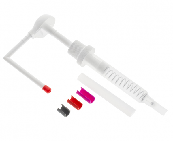 Pompka do dozowania żelu Hi-Float wraz z zestawem miarek do określonych wielkości balonów.