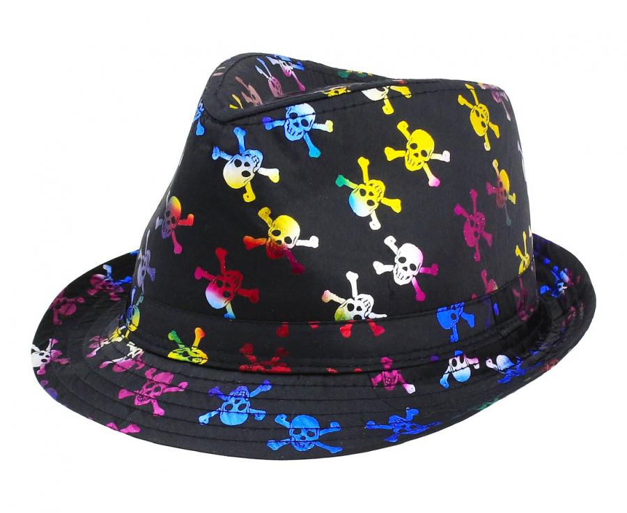 Kapelusz czarny, kolorowe czaszki