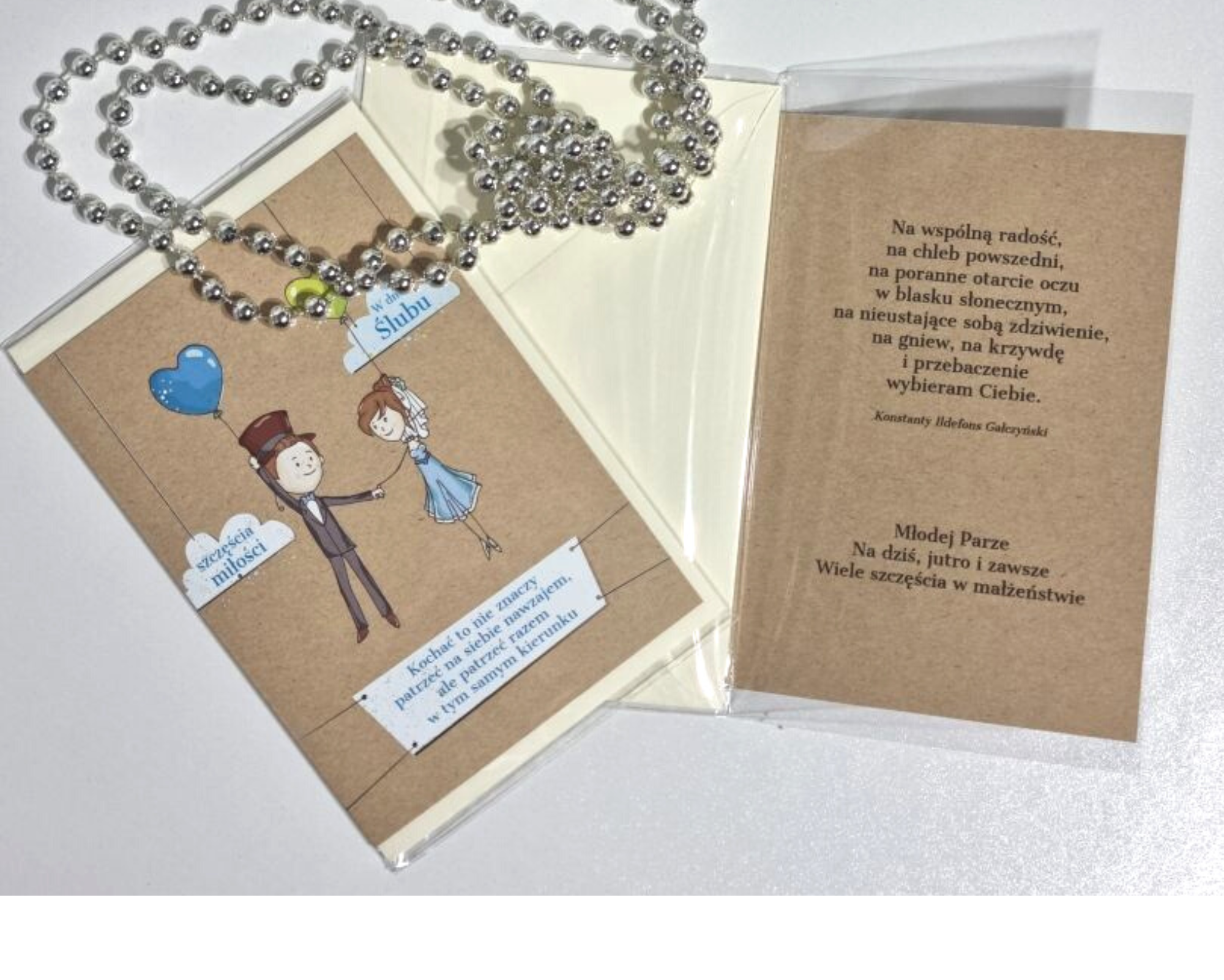 BestselleryNowościPromocjeO nasPrzepiękna kartka Ślubna dla Młodej Pary z uroczym nadrukiem. W środku piękne życzenia. W zestawie koperta.