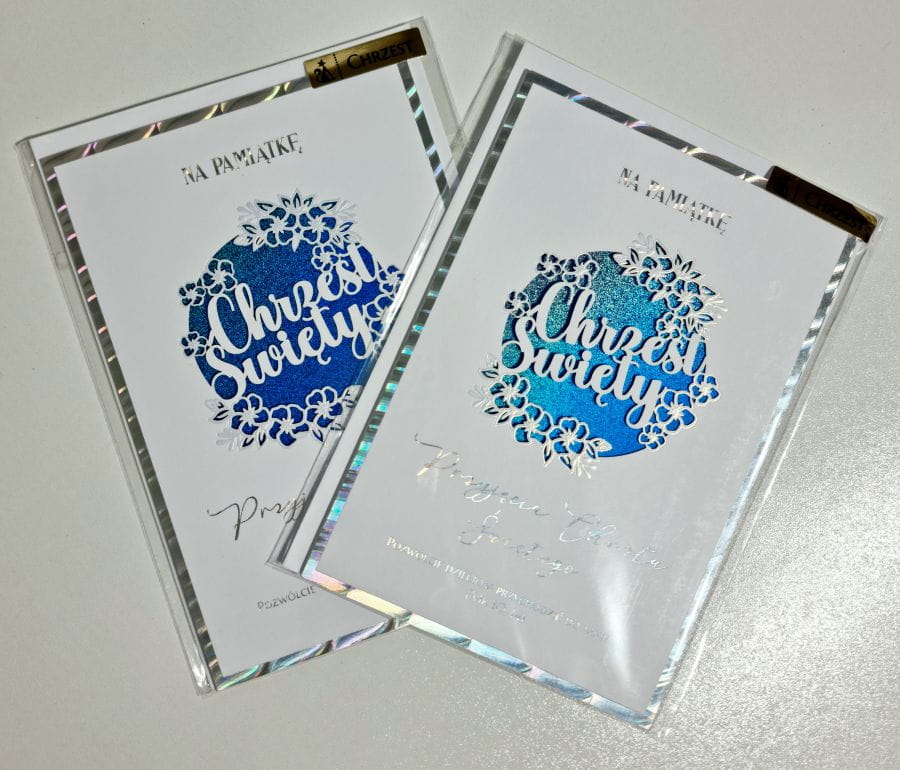 BestselleryNowościPromocjeO nasPrzepiękna i elegancka kartka okolicznościowa na Pamiątkę Chrztu Świętego z ażurowym wzorem i pięknie mieniącym się w świetle nadrukiem w środku. Na około srebrna, mieniąca się lamówka i taki sam napis. Karnet, którym nie można się nie zachwycić :) Dodatkowo, w środku piękne życzenia. W zestawie koperta.