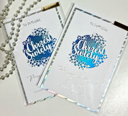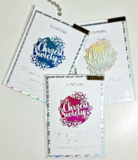 Karnet zdobiony tłoczeniem, złoceniem, foliowany