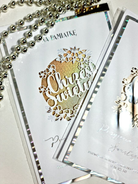Karnet zdobiony tłoczeniem, złoceniem, foliowany