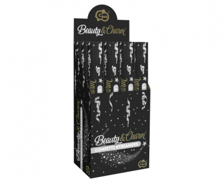 BestselleryNowościPromocjeO nasKonfetti srebrne serpentyny w strzelającej tubie z kolekcji premium Beauty&Charm to wyjątkowo wystrzałowa dekoracja na imprezę!