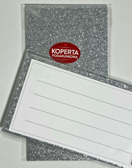 BestselleryNowościPromocjeO nasPiękna, brokatowa koperta upominkowa - idealna na przekazanie pieniężnego Prezentu Młodej Parze czy miłego liściku na urodziny czy rocznicę.