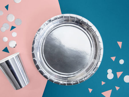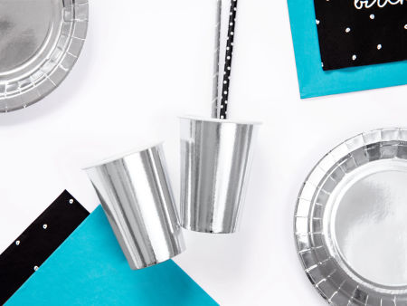 Kubeczki papierowe w kolorze srebrnym (lustrzane), pojemność ok. 220 ml.