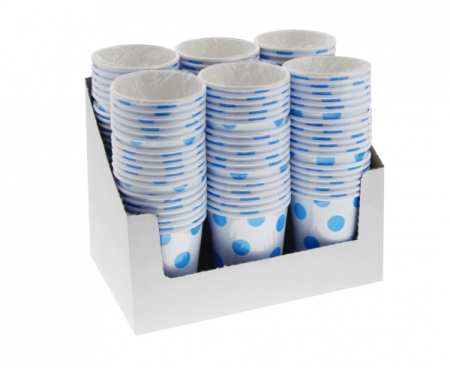 BestselleryNowościPromocjeO nasBiałe kubeczki papierowe w błękitne groszki to świetna alternatywa dla ich plastikowych lub szklanych odpowiedników.
