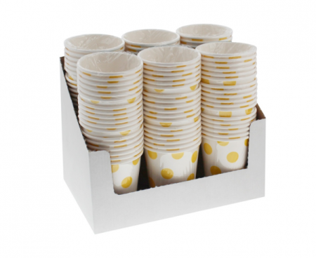 BestselleryNowościPromocjeO nasBiałe kubeczki papierowe w żółte groszki to świetna alternatywa dla ich plastikowych lub szklanych odpowiedników.
