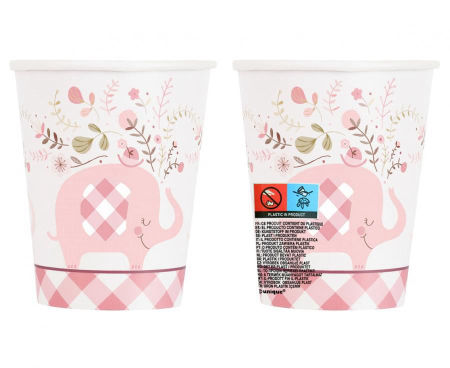 Kubeczki papierowe Floral Elephant, różowe, 266 ml, 8 szt.(sup label)