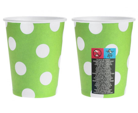 Papierowe kubeczki w kolorze pistacjowym z białymi groszkami.
