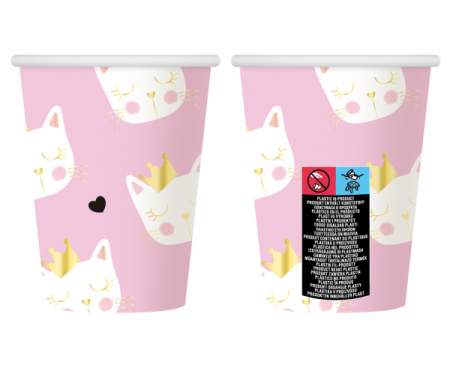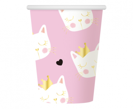 Różowe kubki papierowe z nadrukiem w słodkie kotki. Kubeczki nadają się do picia zarówno ciepłych, jak i zimnych napojów. Śliczny dodatek do zastawy stołowej na urodziny córeczki, baby shower i kinderbal. Kubki papierowe w kotki, dzięki swojej dużej pojemności (270 ml) sprawią, że nie będziesz musiała dolewać co chwila dzieciom ich ulubionych napojów. Są również leciutkie i poręczne, co z pewnością docenisz, robiąc imprezę na świeżym powietrzu. Nikt nie ma wątpliwości, że papierowe kubeczki są bezpieczniejsze niż szklane, a to niezwykle ważne, zwłaszcza gdy chodzi o przyjęcie dla dzieci. Kubki z papieru są również nieporównywalnie bardziej ekologiczne niż ich plastikowe odpowiedniki. Kubki jednorazowe, wcale nie muszą trafić do kosza po skończonej imprezie. Ze względu na przepiękny nadruk kotków, mogą stać się ozdobnym pudełeczkiem na drobiazgi lub inną ozdobą.
