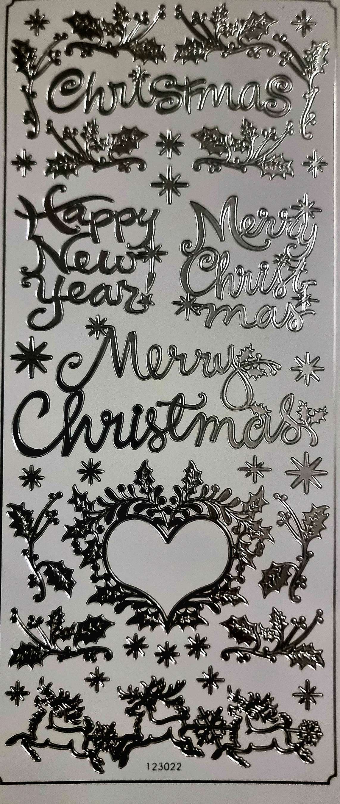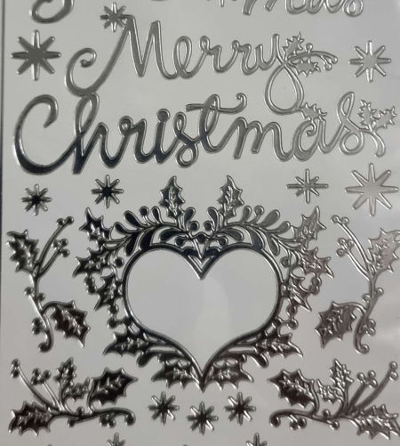 Naklejki ażurowe metaliczne, stickersy - Merry Christmas, srebrne, arkusz 24x10