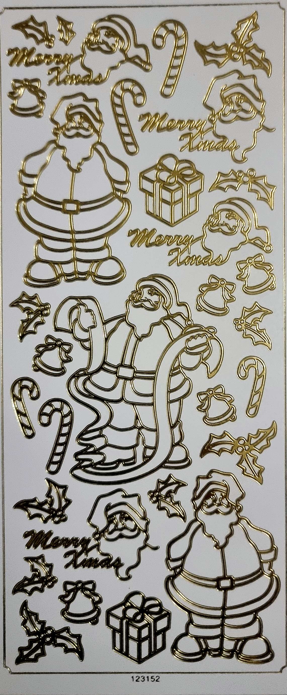 Naklejki ażurowe metaliczne, stickersy - Mikołaje, złote, arkusz 24x10