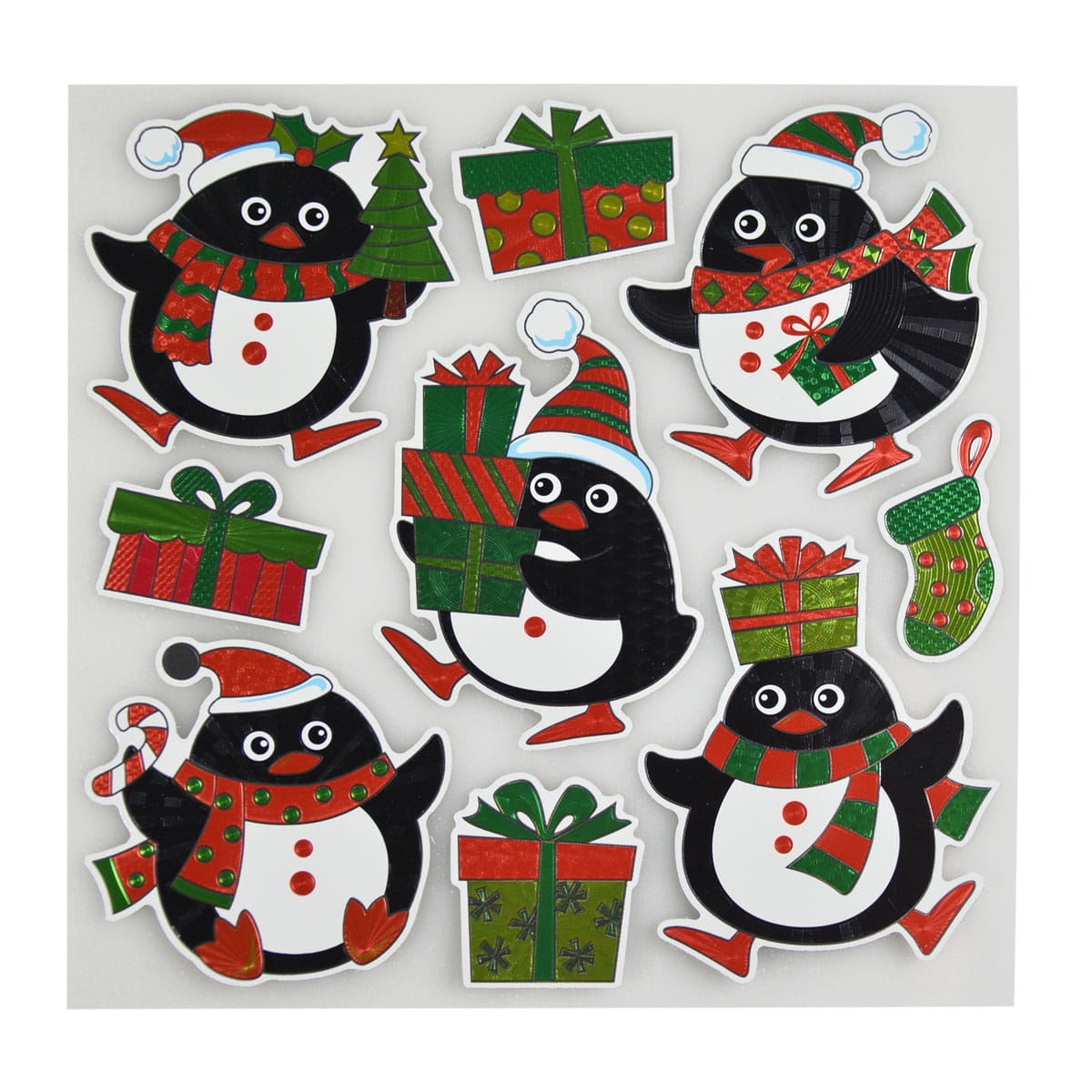 Naklejki holograficzne, pingwiny, arkusz 18x18cm