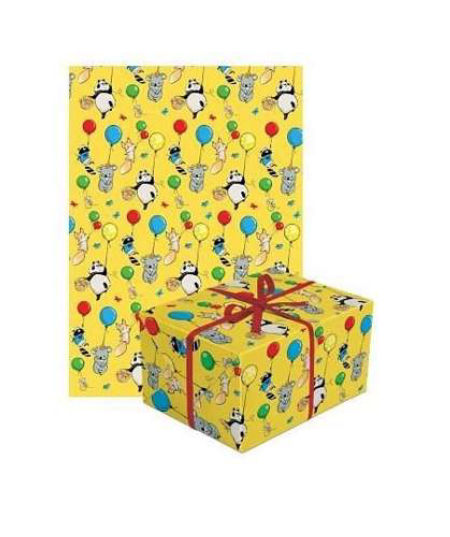 Papier prezentowy żółty, pandy, balony, 70x200 cm