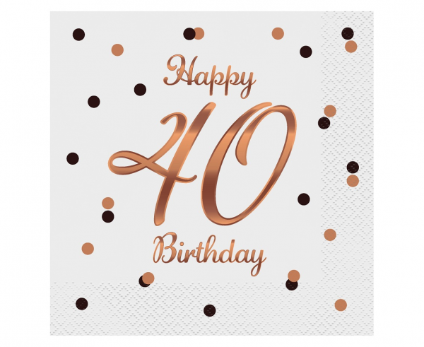Serwetki B&C Happy 40 Birthday, białe, nadruk różowo-złoty, certyfikat FSC, 33x33 cm/ 20 szt.