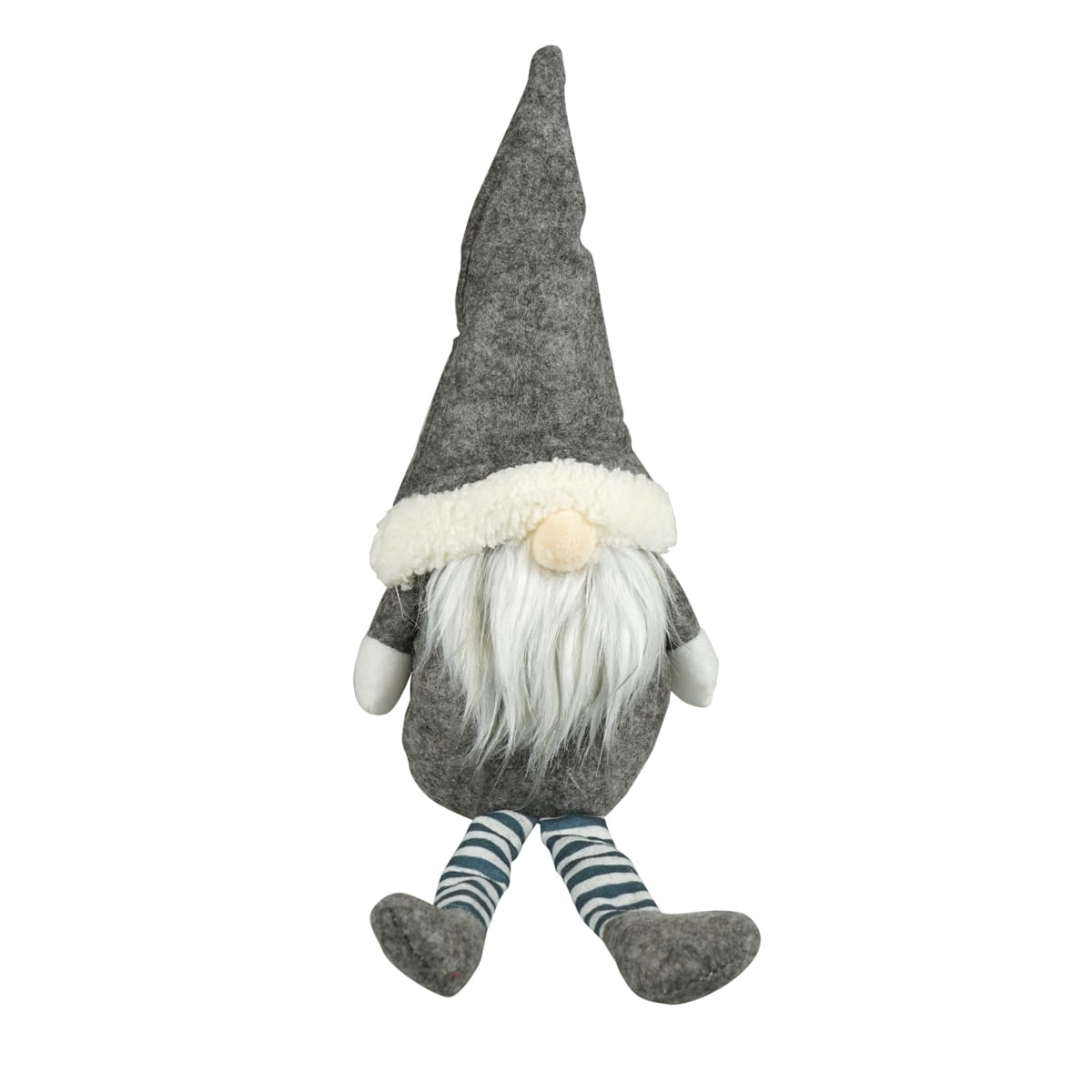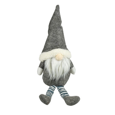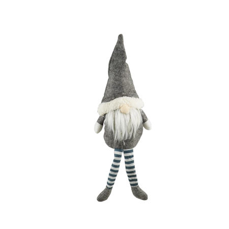 Skrzat ma miękką, białą brodę, getry w paski i wysoką czapkę zakrywającą oczy. Brzeg czapki został obszyty białym pluszem. Długie nogi skrzata zwisają jeśli umieścimy go na brzegu mebla. Uniwersalna dekoracja świąteczna pasująca do każdego wnętrza. Doskonały pomysł na prezent. Wysokość skrzata: 45 cm.