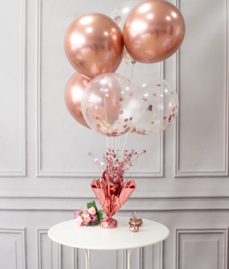Stojak + Ciężarek do balonów - różowe złoto z patykami na 6 balonów