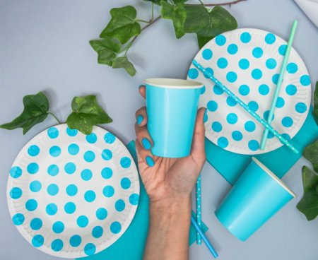 BestselleryNowościPromocjeO nasBłękitne talerze papierowe w groszki są świetne zarówno do ciepłych, jak i zimnych dań.