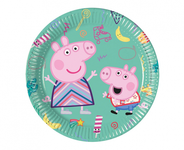 Talerze papierowe z nadrukiem Peppa Pig są odpowiednie zarówno do ciepłych, jak i zimnych dań. Wyrazisty, wysokiej jakości nadruk w intensywnych barwach przyciąga wzrok i wyróżnia się w tłumie.