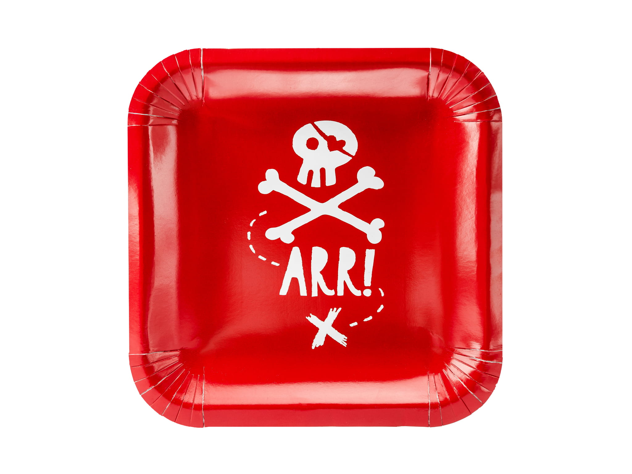 BestselleryNowościPromocjeO nasTalerzyki papierowe Piraci w kolorze czerwonym z białym nadrukiem, wymiary ok. 20 x 20 cm.